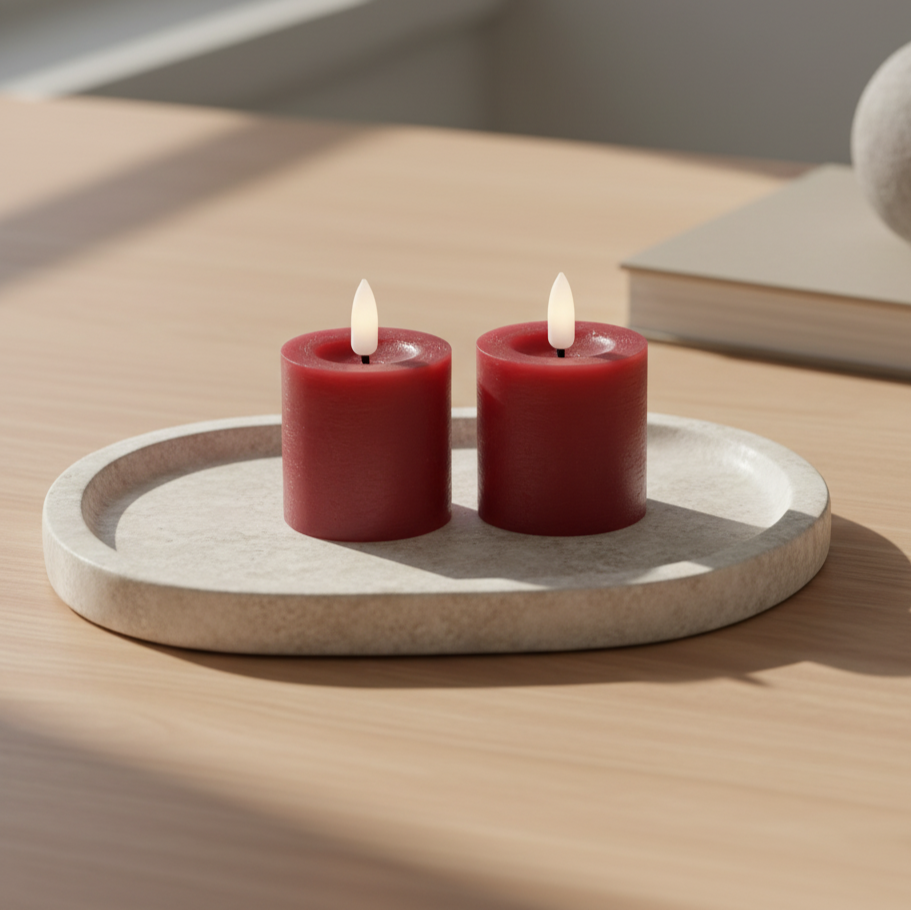 2er-Pack LED-Stumpenkerzen in Rot mit realistischer 3D-Flamme