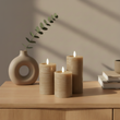 LED Stumpenkerzen Deluxe für den Innenbereich – 3er-Set in Karamell