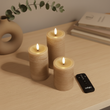 3er-Set LED Stumpenkerzen innen – Karamell mit Fernbedienung & realistischer 3D-Flamme