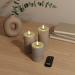 3er-Set LED Stumpenkerzen innen – Sand mit Fernbedienung & realistischer 3D-Flamme
