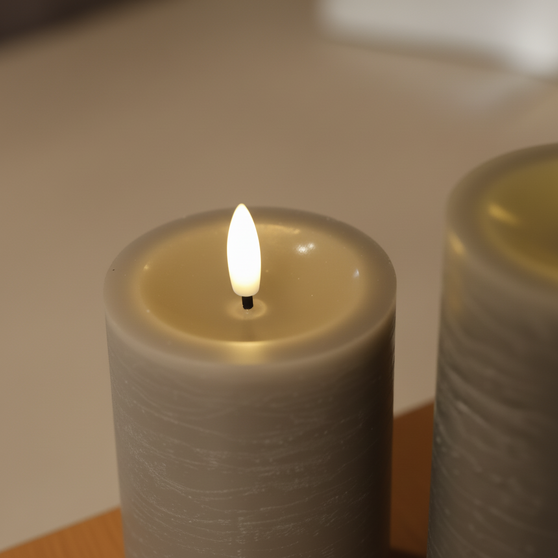 Dieses stilvolle 3er-Set LED Stumpenkerzen in der natürlichen Farbe Sand bringt Wärme und dezente Eleganz in Ihr Zuhause. Mit echter Wachsoberfläche in rustikaler Deluxe-Qualität und einer lebensechten 3D-Flamme schaffen die Kerzen eine gemütliche Atmosphäre – ganz ohne Ruß, Brandgefahr oder Wachsreste.