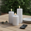 Elegante set met drie witte LED -kaarsen, ideaal voor buitenruimte. Perfect voor kleine lantaarns, de tuintafel of een gezellige buitensfeer.