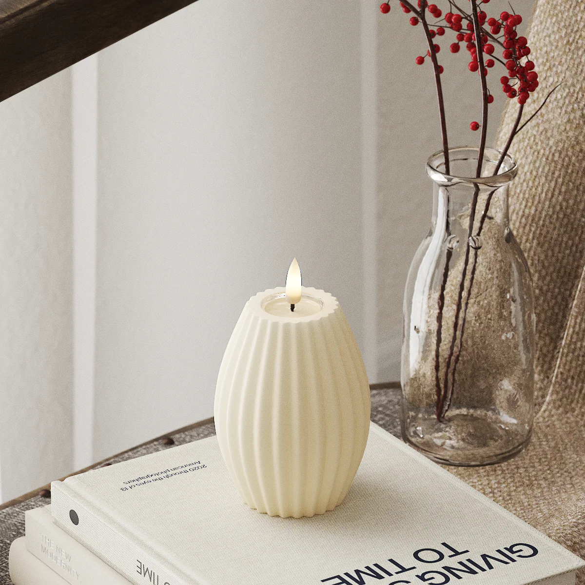 Diese dekorative Deluxe Homeart LED-Kerze hat rundherum senkrechte Rillen. Das sieht unglaublich elegant und eben mal anders aus.