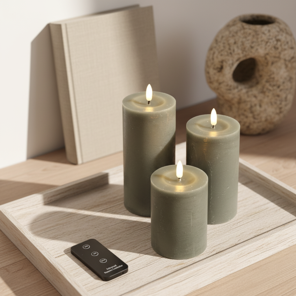 Groen LED-kaarsenset met 3 stompkaarsen en afstandsbediening