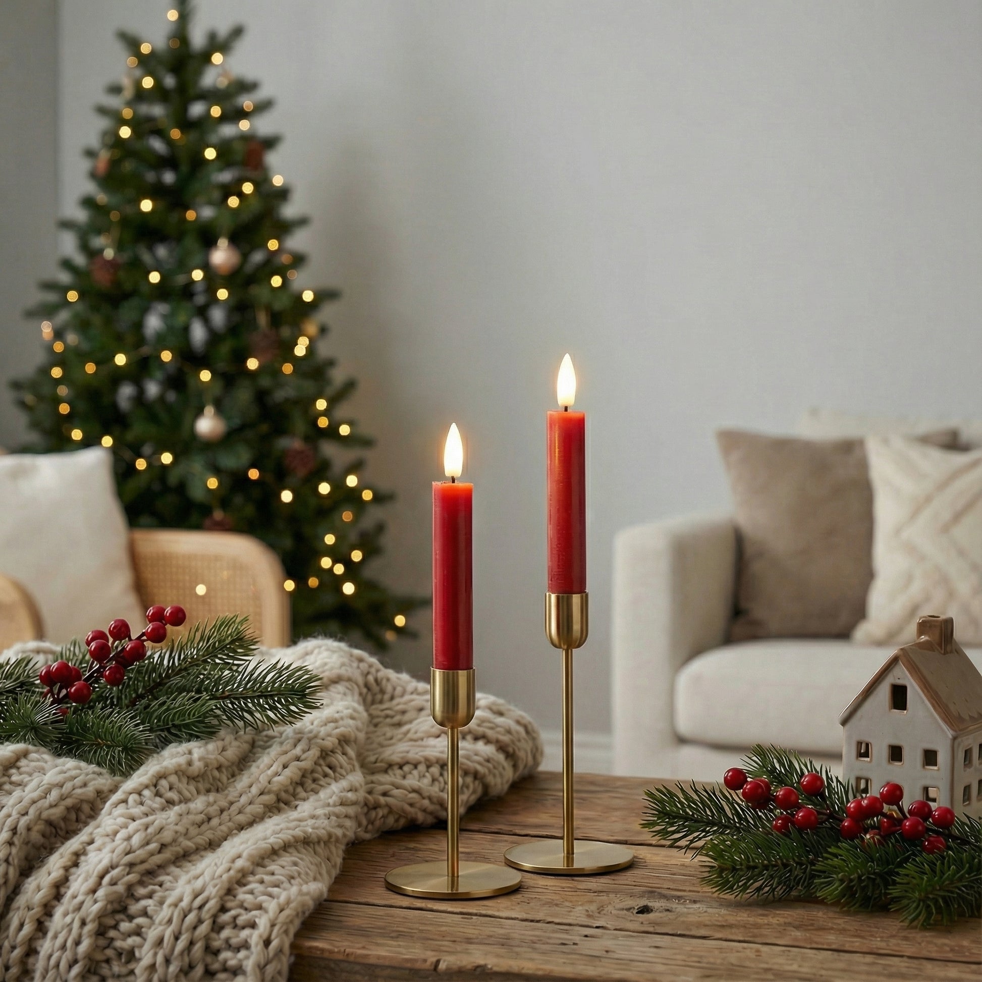 LED Stabkerzen 2 stück D2,2 x 15 cm Rot - 3D Flamme - Delight By Deluxe Homeart