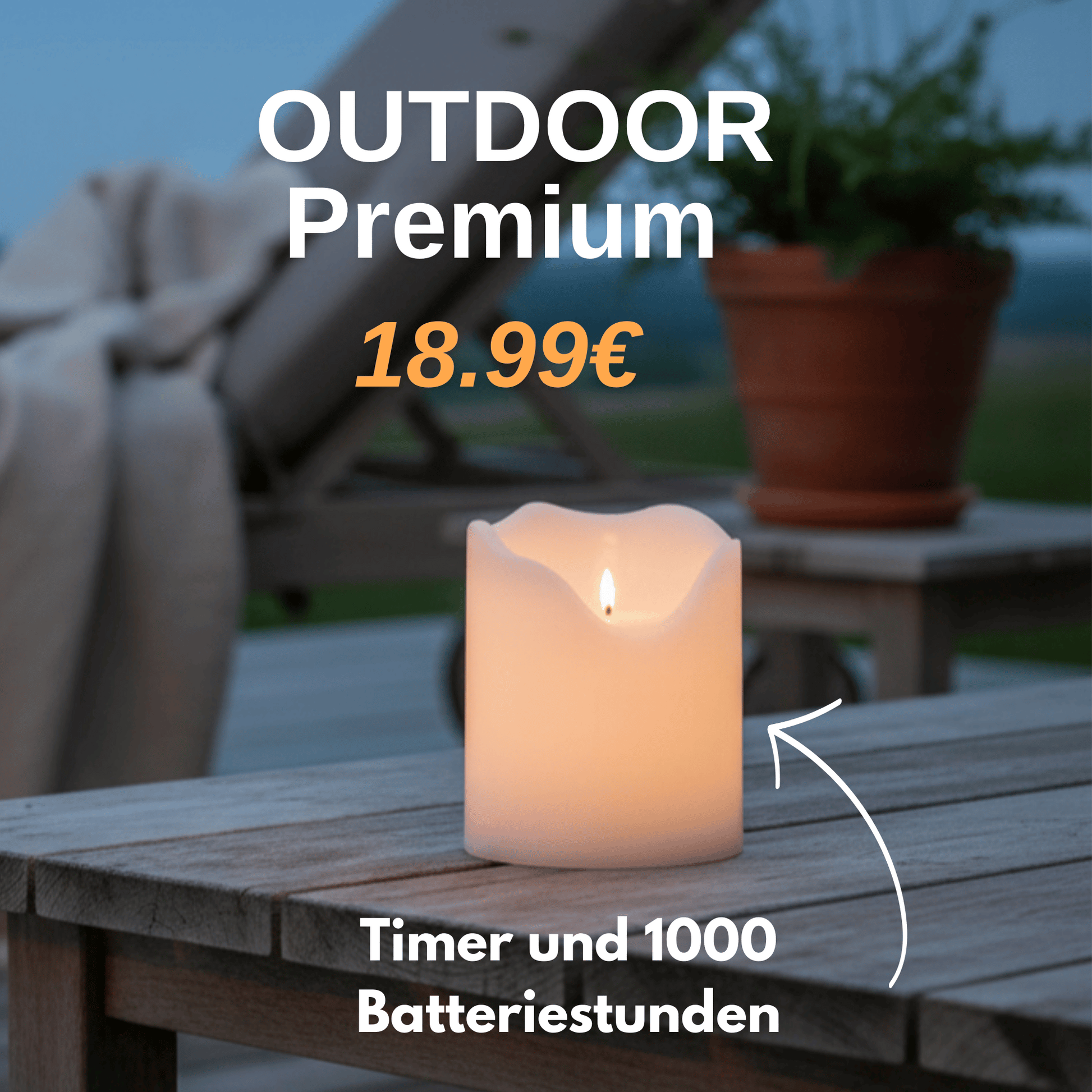 Große LED-Stumpenkerze für draußen – naturgetreue Flamme und Timerfunktion