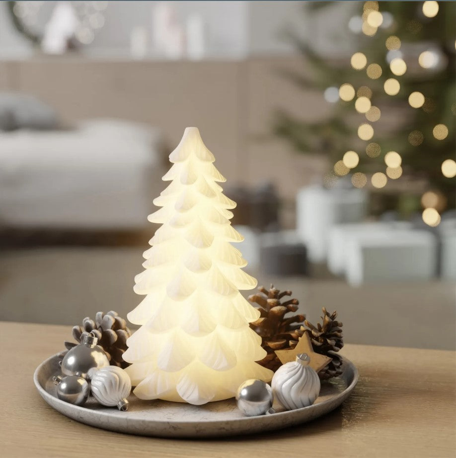 LED Weihnachtsbaum H 19 cm – Stearin – Weiß – Deluxe Homeart