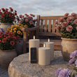 Premium Outdoor 3er-Set Nordic Flame LED-Kerzen inkl. Fernbedienung – Sandfarben