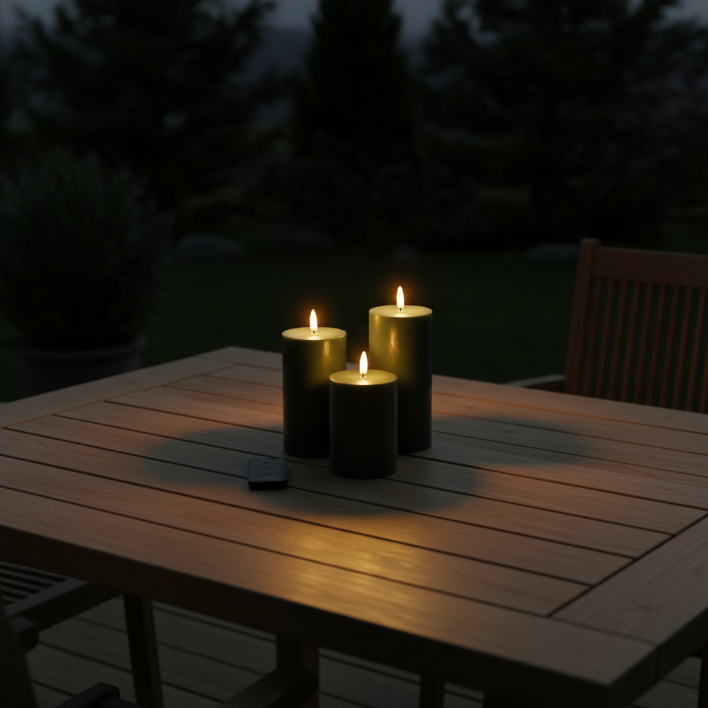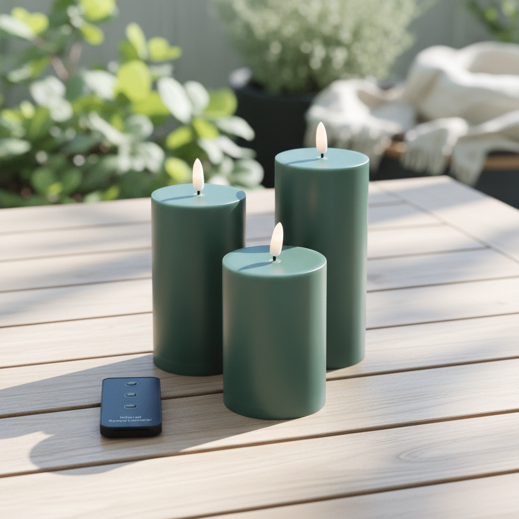Outdoor LED-Stumpenkerzen D7 – 3er-Set in Grün – Premium
